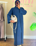 Abaya en denim véritable, confectionnée avec un tissu jean de qualité supérieure offrant durabilité et conf...