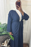 Abaya en denim véritable, confectionnée avec un tissu jean de qualité supérieure offrant durabilité et conf...